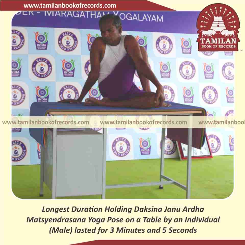 Longest Duration Holding Daksina Janu Ardha Matsyendrasana Yoga Pose on a Table by an Individual (Male)
