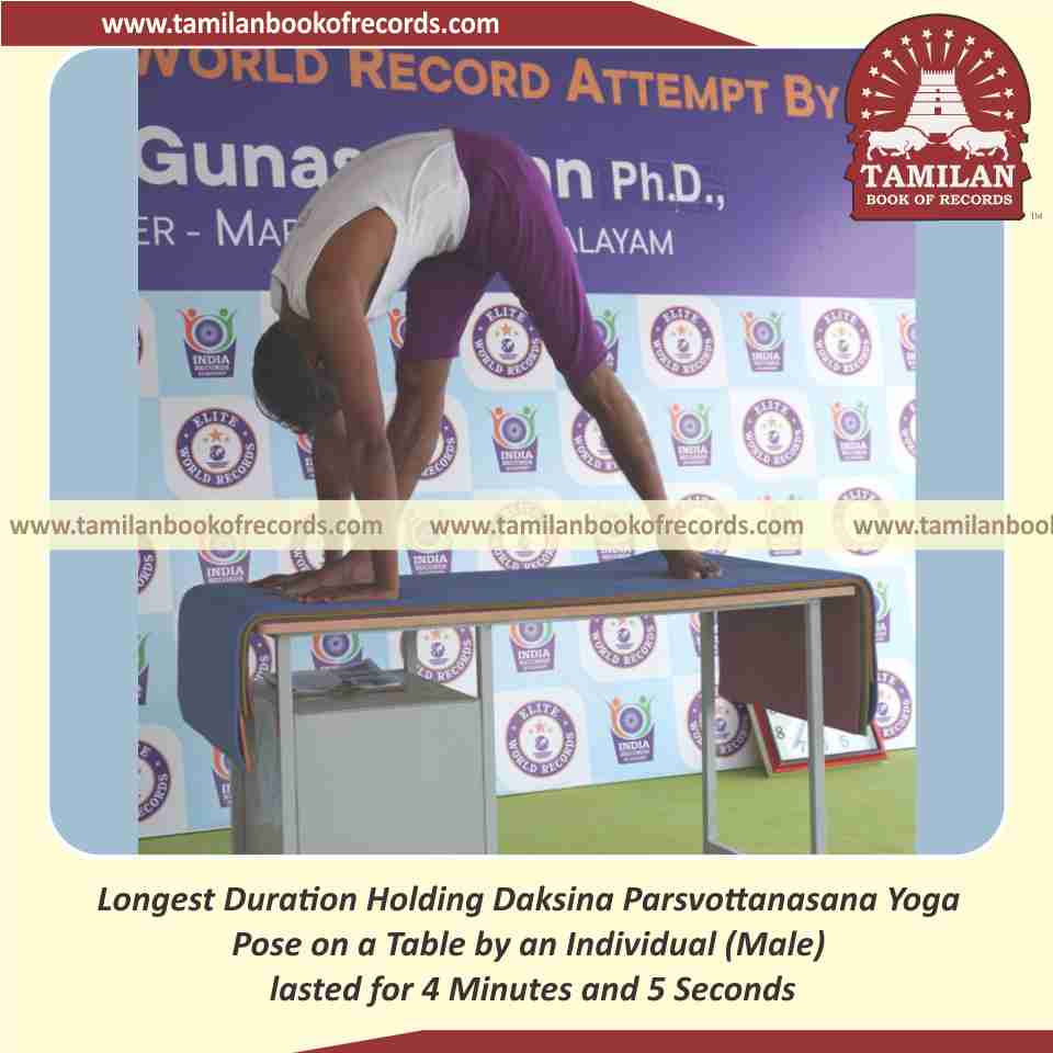 Longest Duration Holding Daksina Parsvottanasana Yoga Pose on a Table by an Individual (Male)