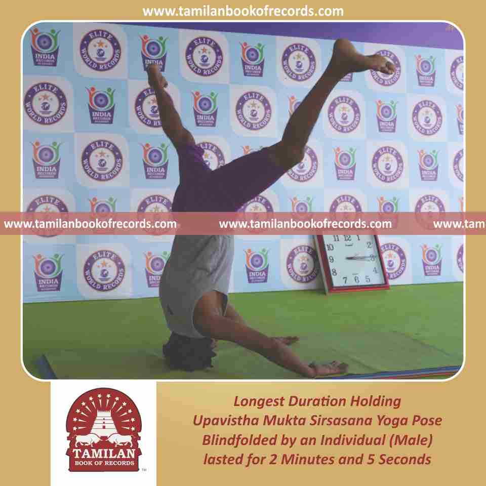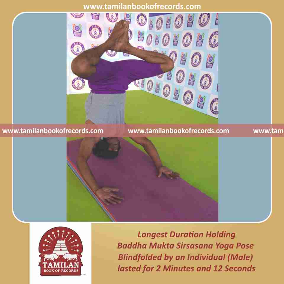 Longest Duration Holding Baddha Mukta Sirsasana Yoga Pose Blindfolded by an Individual (Male)