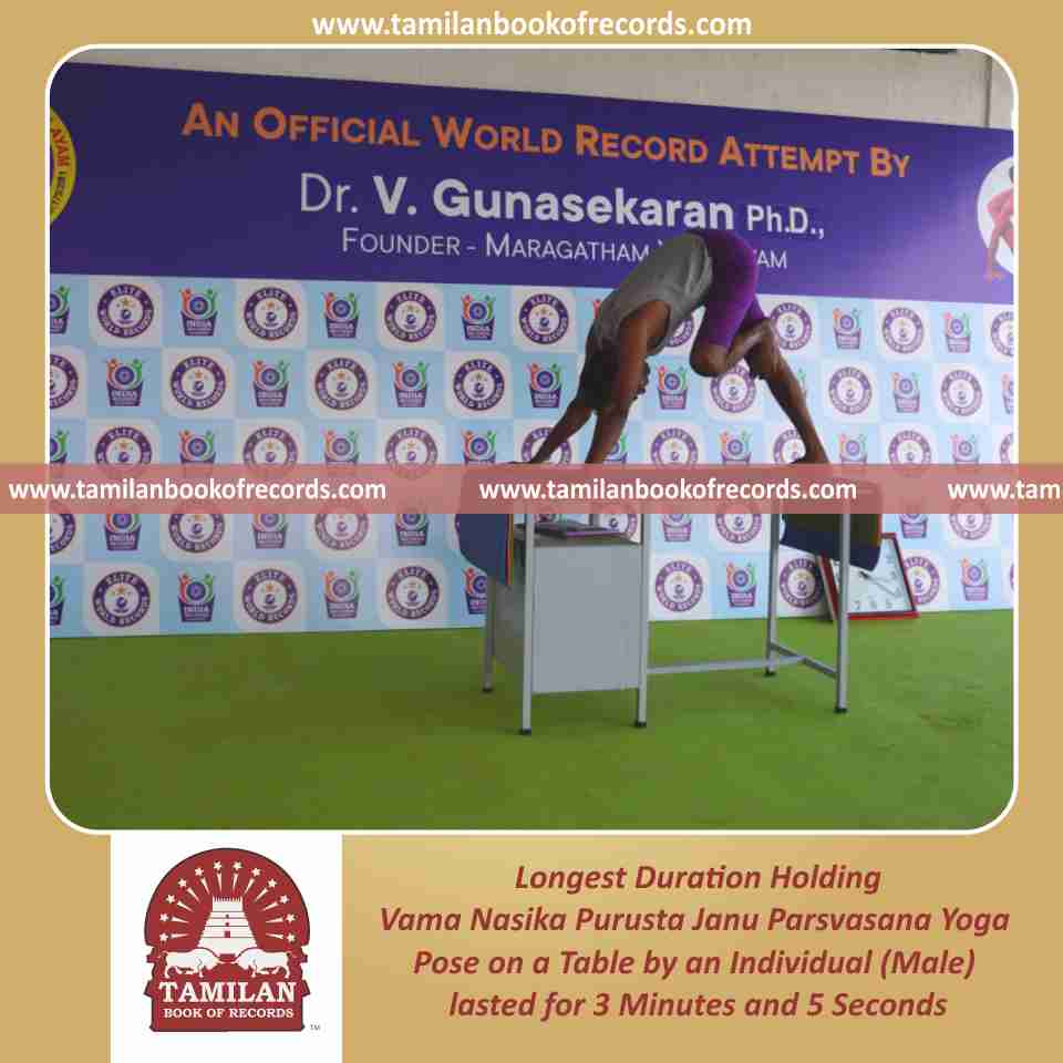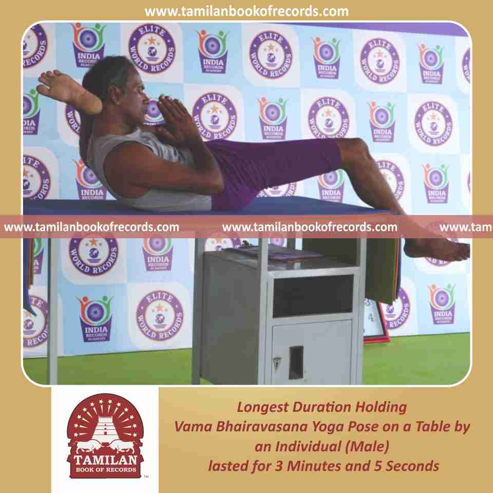 Longest Duration Holding Vama Bhairavasana Yoga Pose on a Table by an Individual (Male)