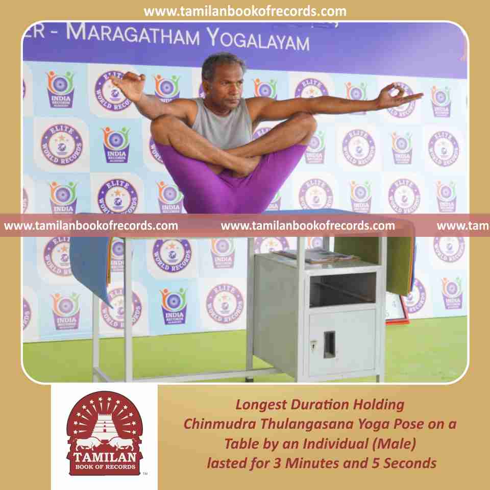 Longest Duration Holding Chinmudra Thulangasana Yoga Pose on a Table by an Individual (Male)