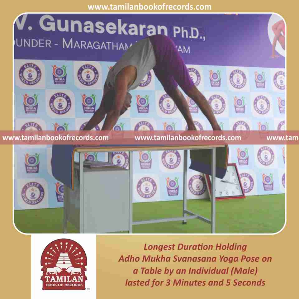 Longest Duration Holding Adho Mukha Svanasana Yoga Pose on a Table by an Individual (Male)