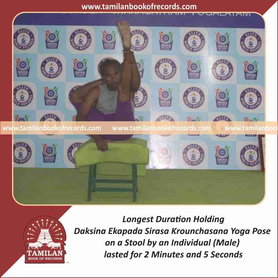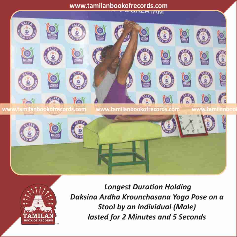 Longest Duration Holding Daksina Ardha Krounchasana Yoga Pose on a Stool by an Individual (Male)