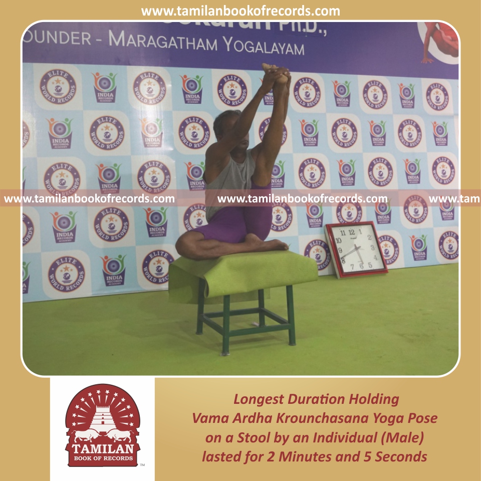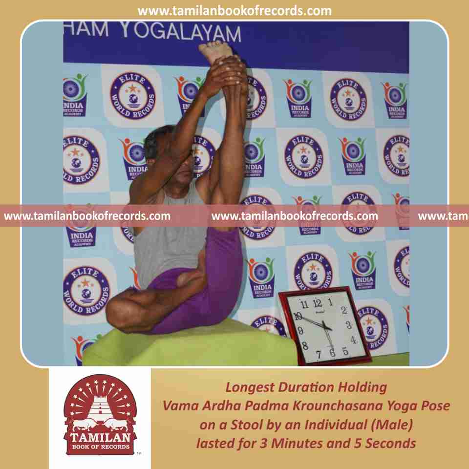 Longest Duration Holding Vama Ardha Krounchasana Yoga Pose on a Stool by an Individual (Male)
