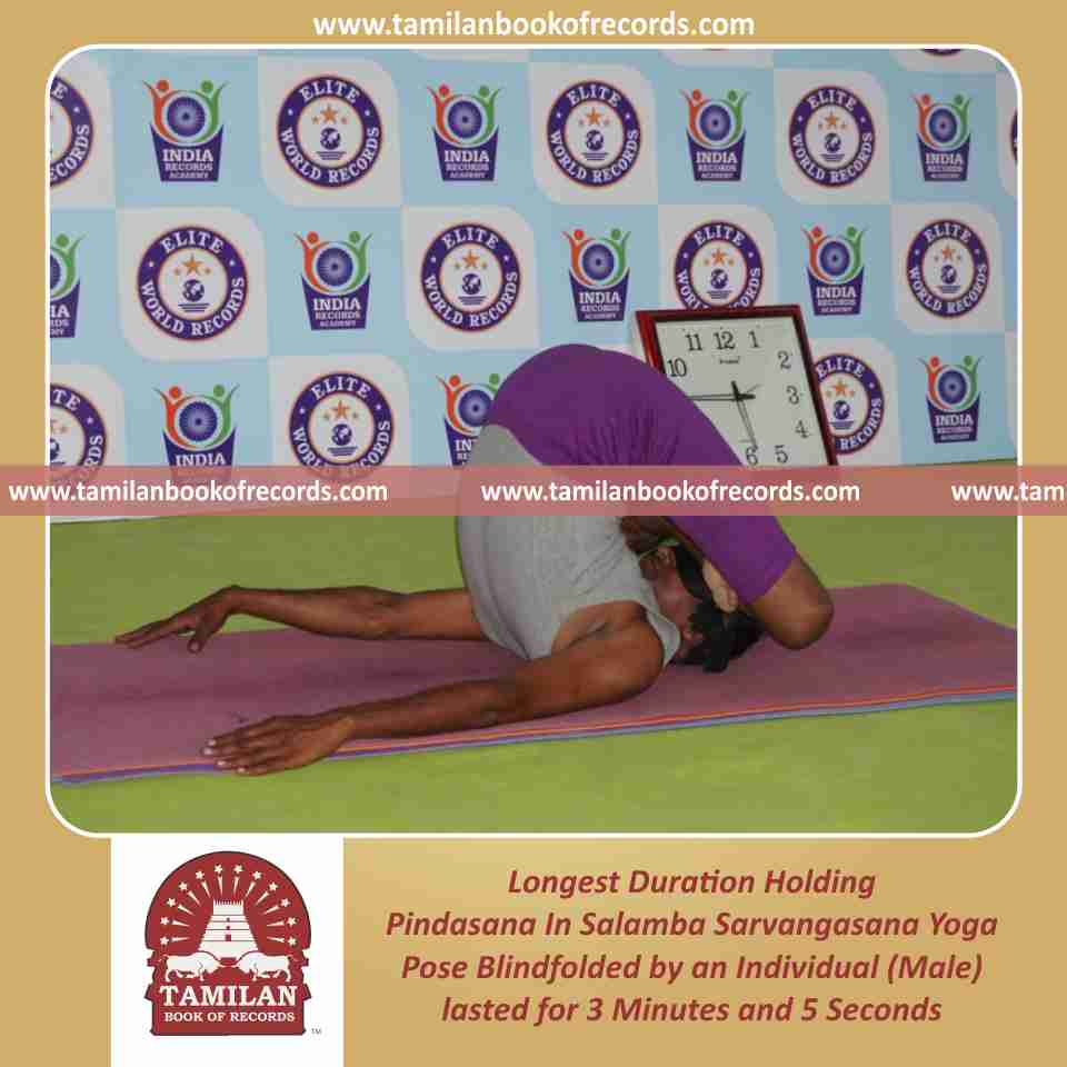 Longest Duration Holding Pindasana In Salamba Sarvangasana Yoga Pose Blindfolded by an Individual (Male)