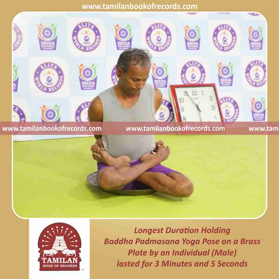 Longest Duration Holding Baddha Padmasana Yoga Pose on a Brass Plate by an Individual (Male)