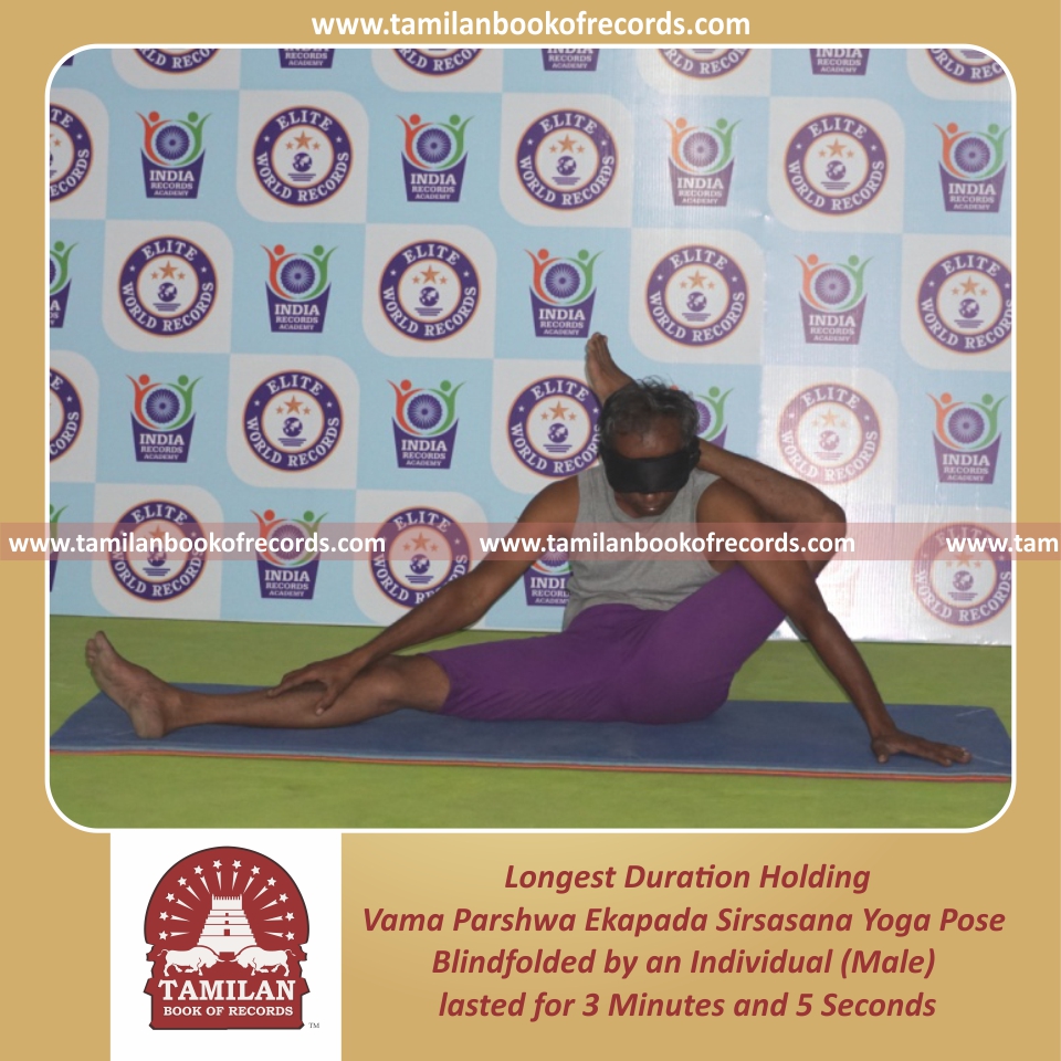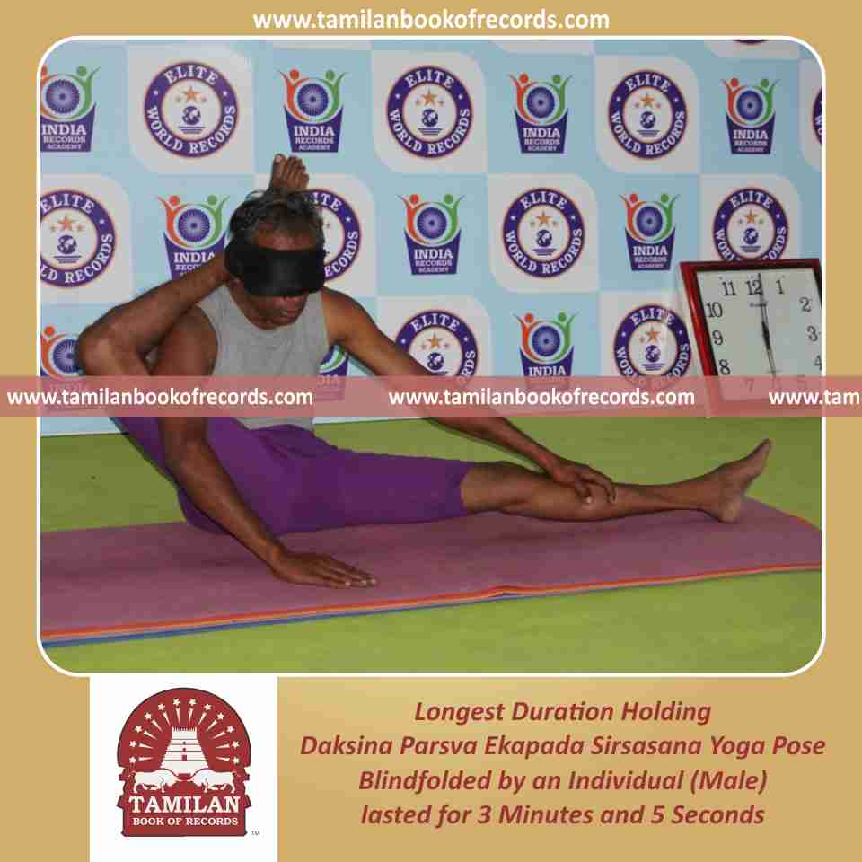 Longest Duration Holding Daksina Parsva Ekapada Sirsasana Yoga Pose Blindfolded by an Individual (Male)
