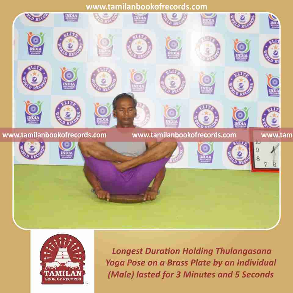Longest Duration Holding Thulangasana Yoga Pose on a Brass Plate by an Individual (Male)