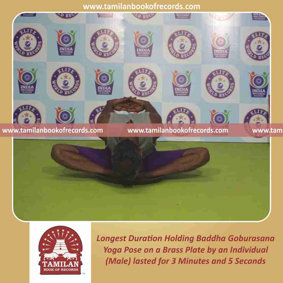 Longest Duration Holding Baddha Goburasana Yoga Pose on a Brass Plate by an Individual (Male)