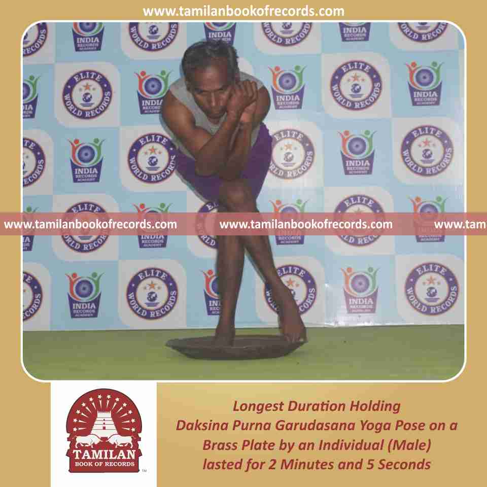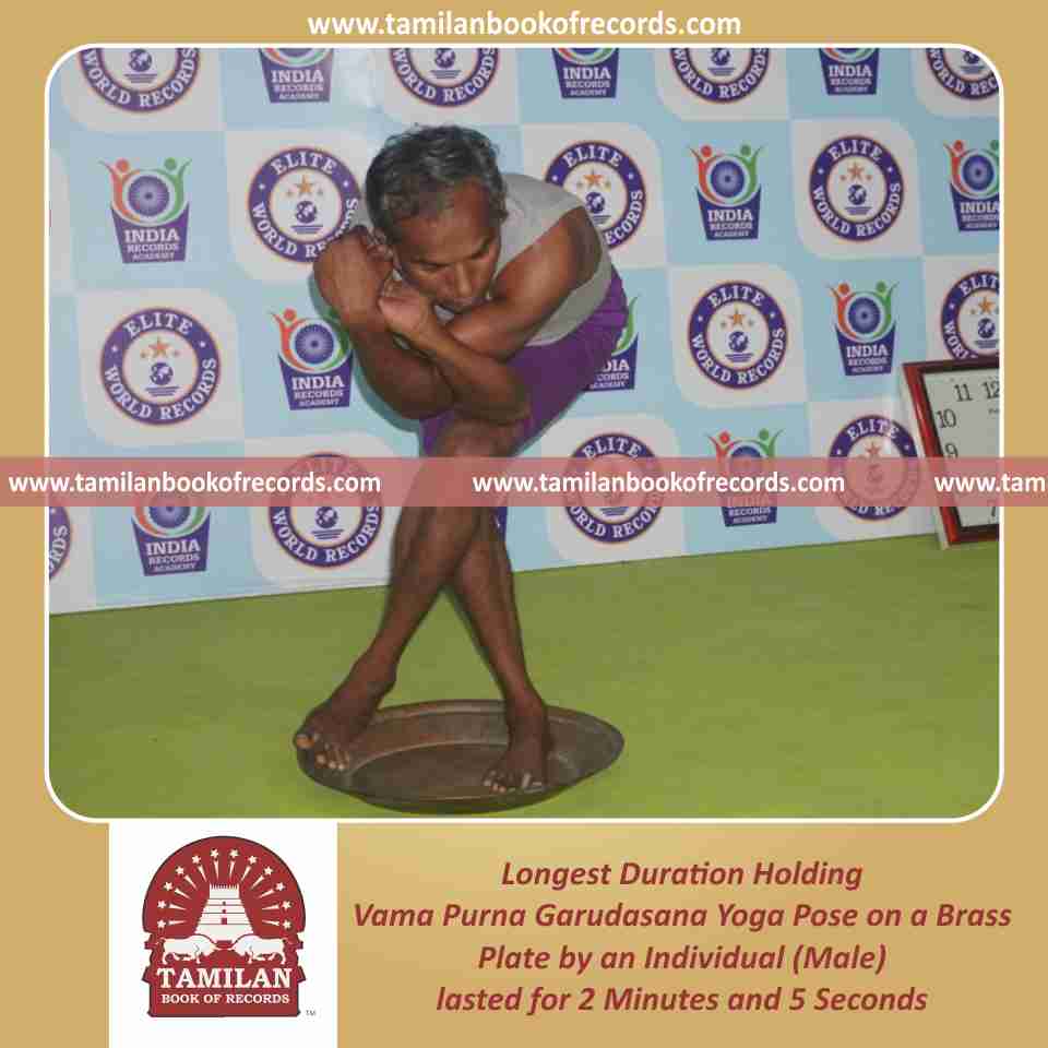 Longest Duration Holding Vama Purna Garudasana Yoga Pose on a Brass Plate by an Individual (Male)