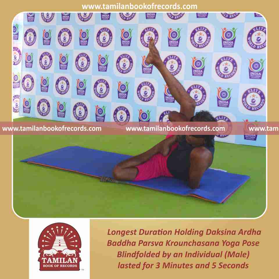 Longest Duration Holding Daksina Ardha Baddha Parsva Krounchasana Yoga Pose Blindfolded by an Individual (Male)