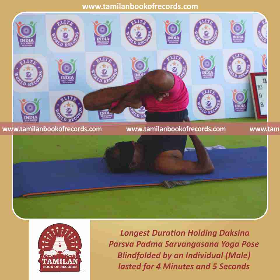 Longest Duration Holding Daksina Parsva Padma Sarvangasana Yoga Pose Blindfolded by an Individual (Male)