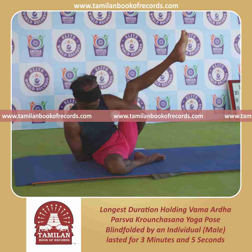 Longest Duration Holding Vama Ardha Parsva Krounchasana Yoga Pose Blindfolded by an Individual (Male)