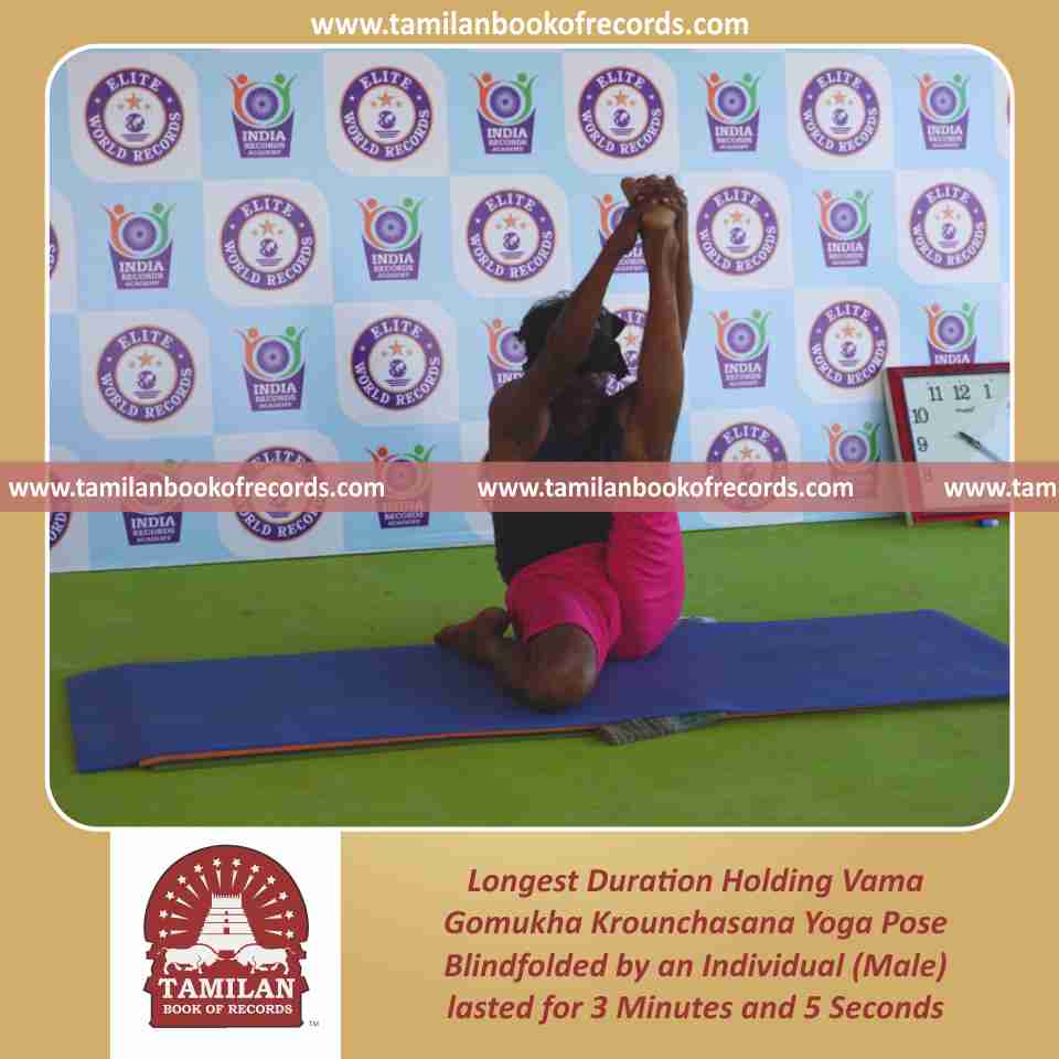 Longest Duration Holding Daksina Gomukha Krounchasana Yoga Pose Blindfolded by an Individual (Male)