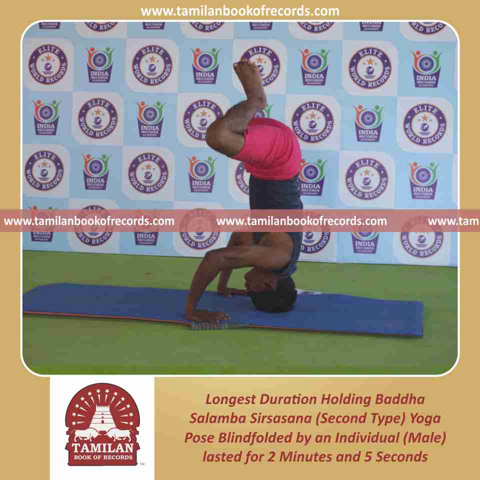 Longest Duration Holding Baddha Salamba Sirsasana (Second Type) Yoga Pose Blindfolded by an Individual (Male)