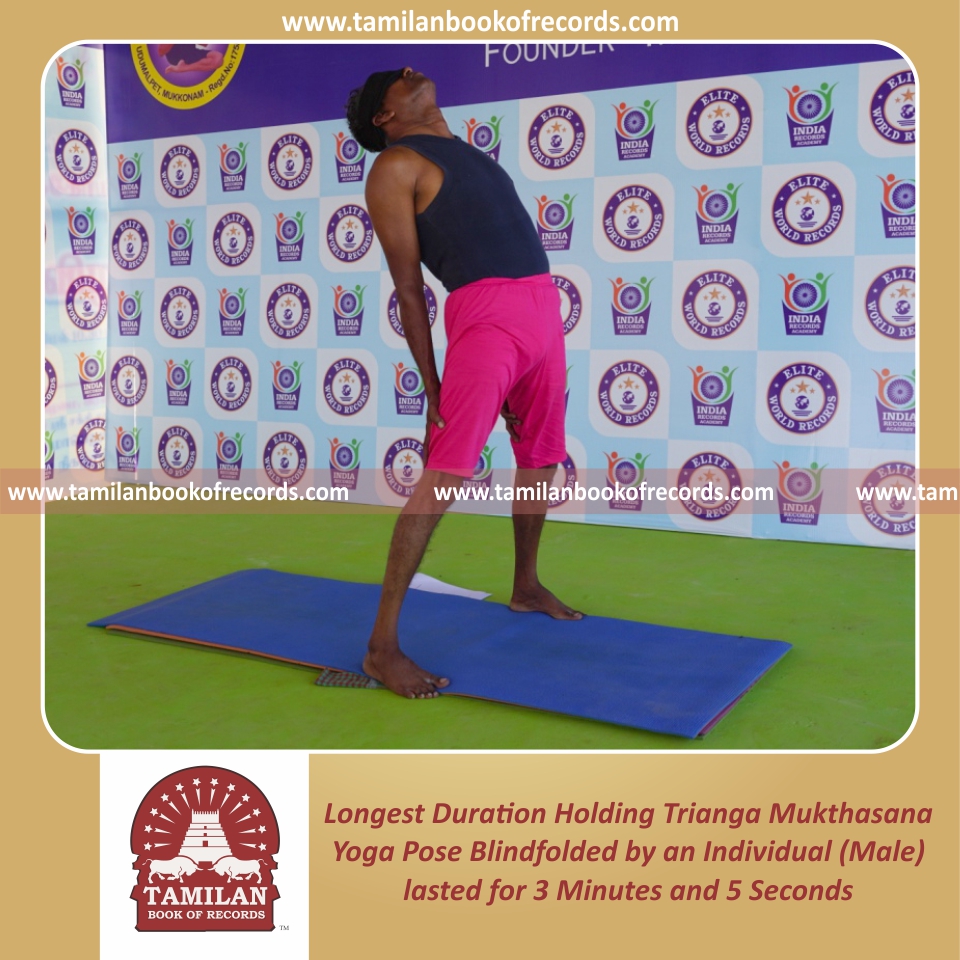 Longest Duration Holding Trianga Mukthasana Yoga Pose Blindfolded by an Individual (Male)