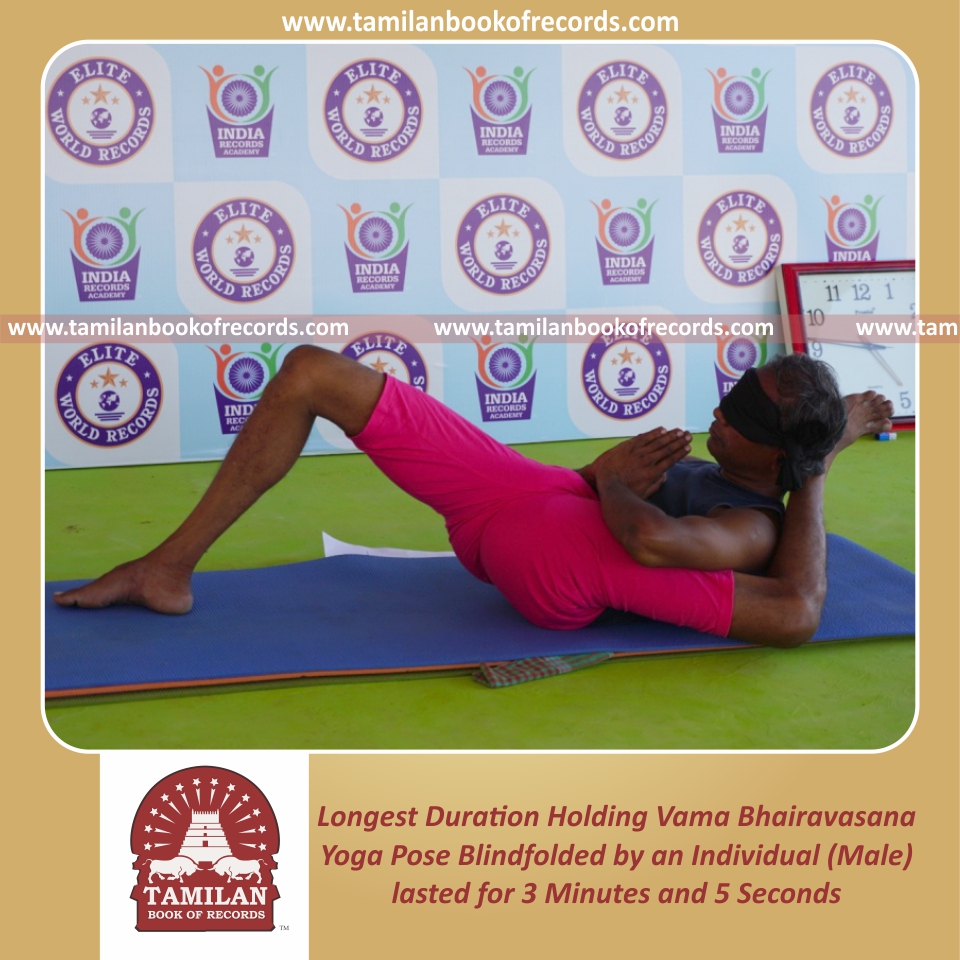 Longest Duration Holding Vama Bhairavasana Yoga Pose Blindfolded by an Individual (Male)