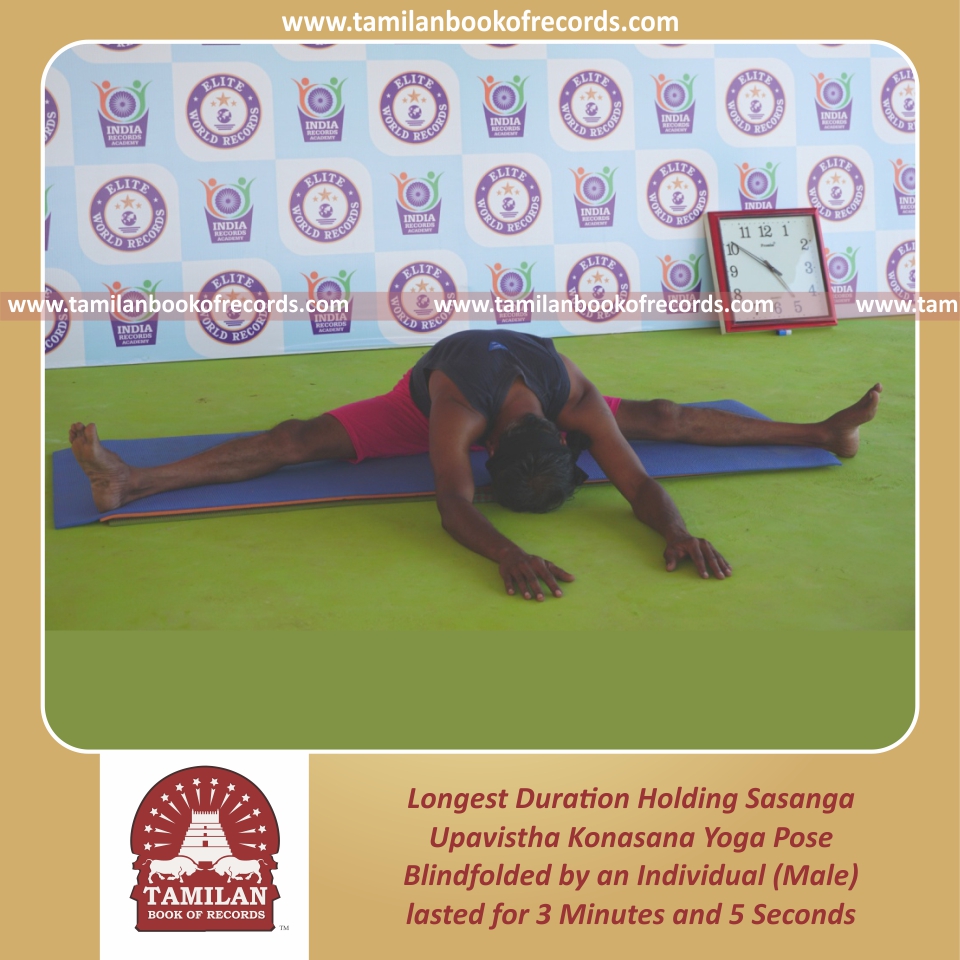 Longest Duration Holding Sasanga Upavistha Konasana Yoga Pose Blindfolded by an Individual (Male)