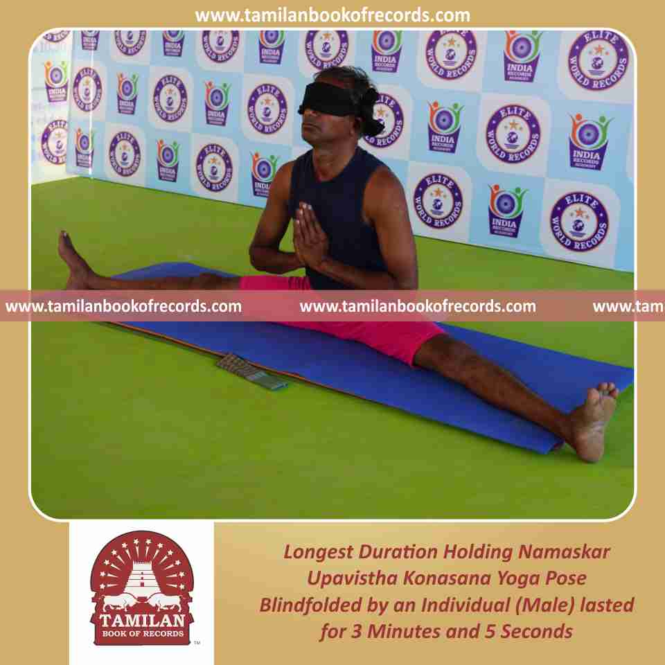 Longest Duration Holding Namaskar Upavistha Konasana Yoga Pose Blindfolded by an Individual (Male)