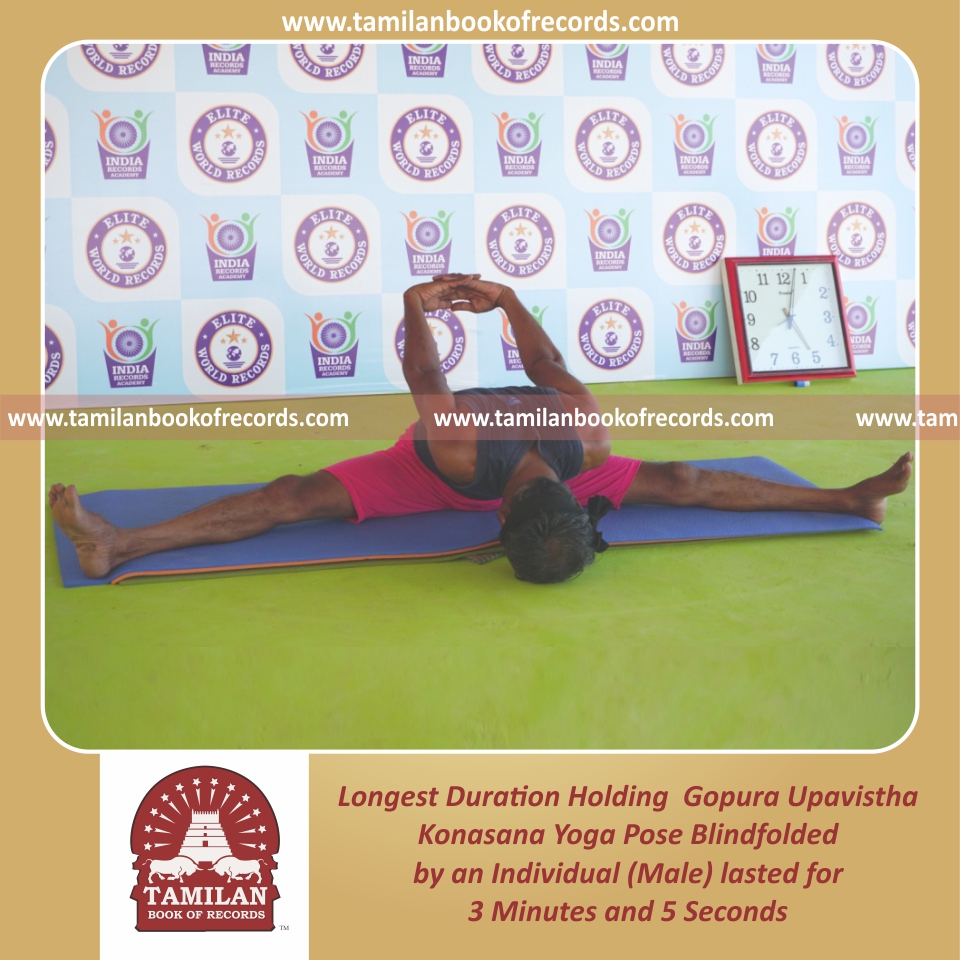 Longest Duration Holding Gopura Upavistha Konasana Yoga Pose Blindfolded by an Individual (Male)