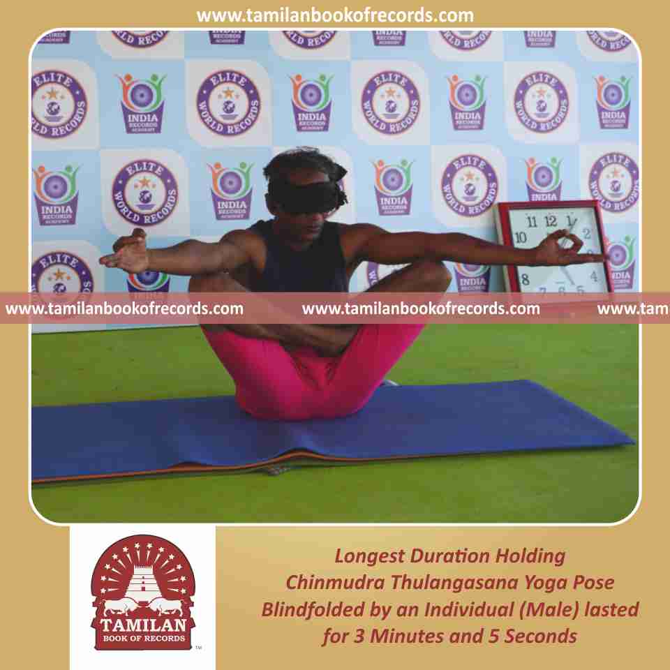 Longest Duration Holding Chinmudra Thulangasana Yoga Pose Blindfolded by an Individual (Male)