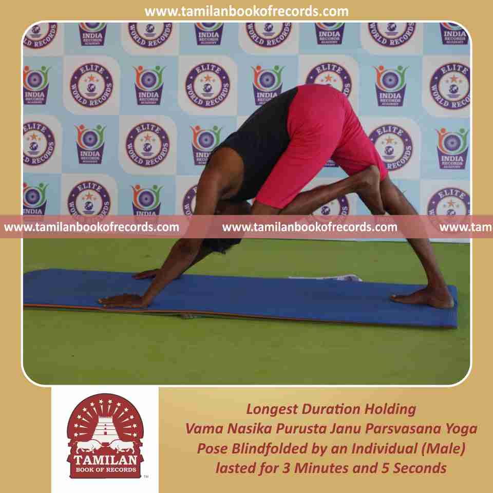 Longest Duration Holding Vama Nasika Purusta Janu Parsvasana Yoga Pose Blindfolded by an Individual (Male)