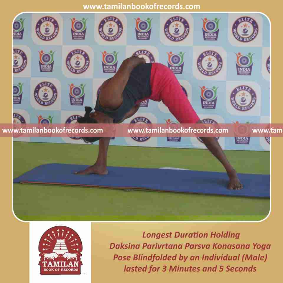 Longest Duration Holding Daksina Parivrtana Parsva Konasana Yoga Pose Blindfolded by an Individual (Male)