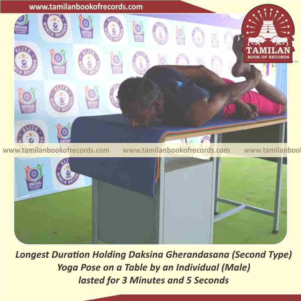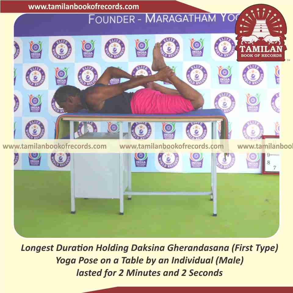Longest Duration Holding Daksina Gherandasana (Second Type) Yoga Pose on a Table by an Individual (Male)