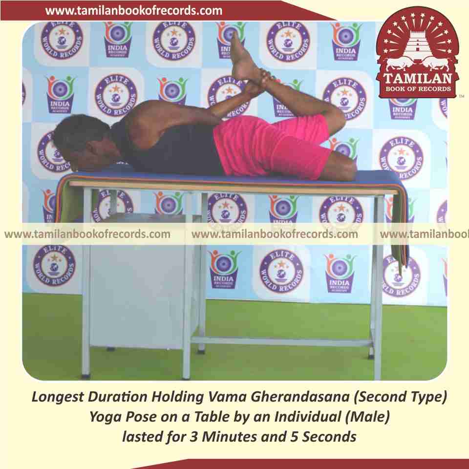 Longest Duration Holding Vama Gherandasana (Second Type) Yoga Pose on a Table by an Individual (Male)