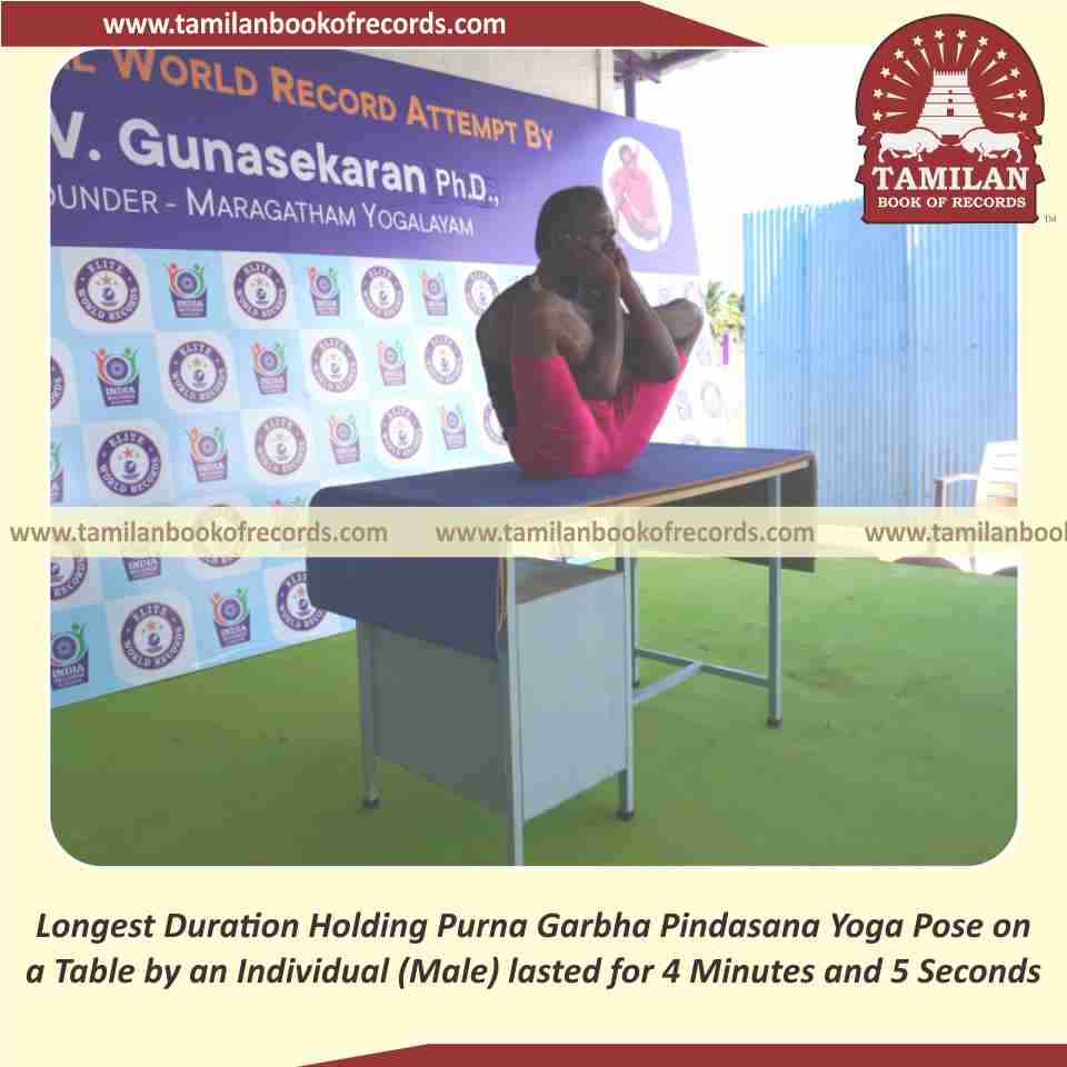 Longest Duration Holding Purna Garbha Pindasana Yoga Pose on a Table by an Individual (Male)