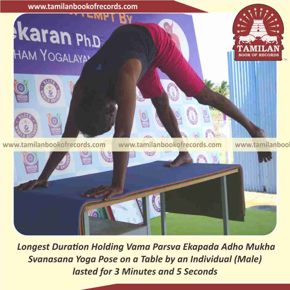 Longest Duration Holding Vama Parsva Ekapada Adho Mukha Svanasana Yoga Pose on a Table by an Individual (Male)