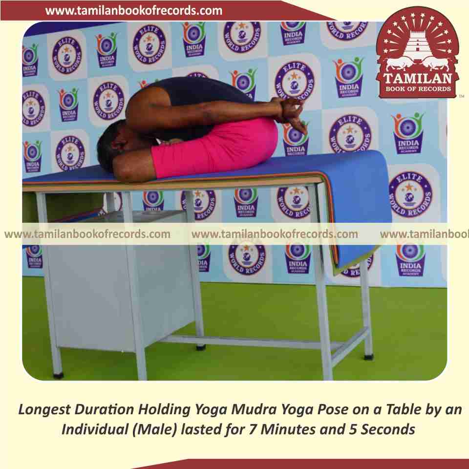 Longest Duration Holding Yoga Mudra Yoga Pose on a Table by an Individual (Male)