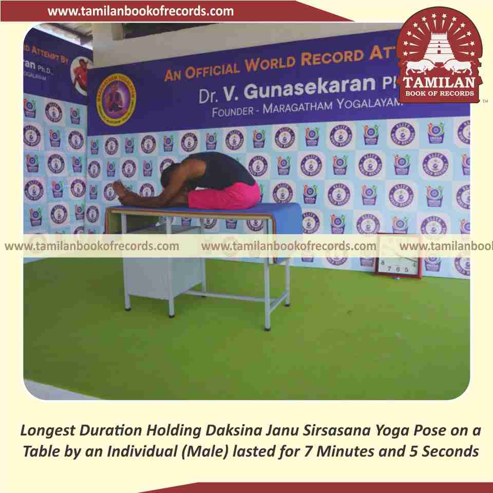 Longest Duration Holding Daksina Janu Sirsasana Yoga Pose on a Table by an Individual (Male)