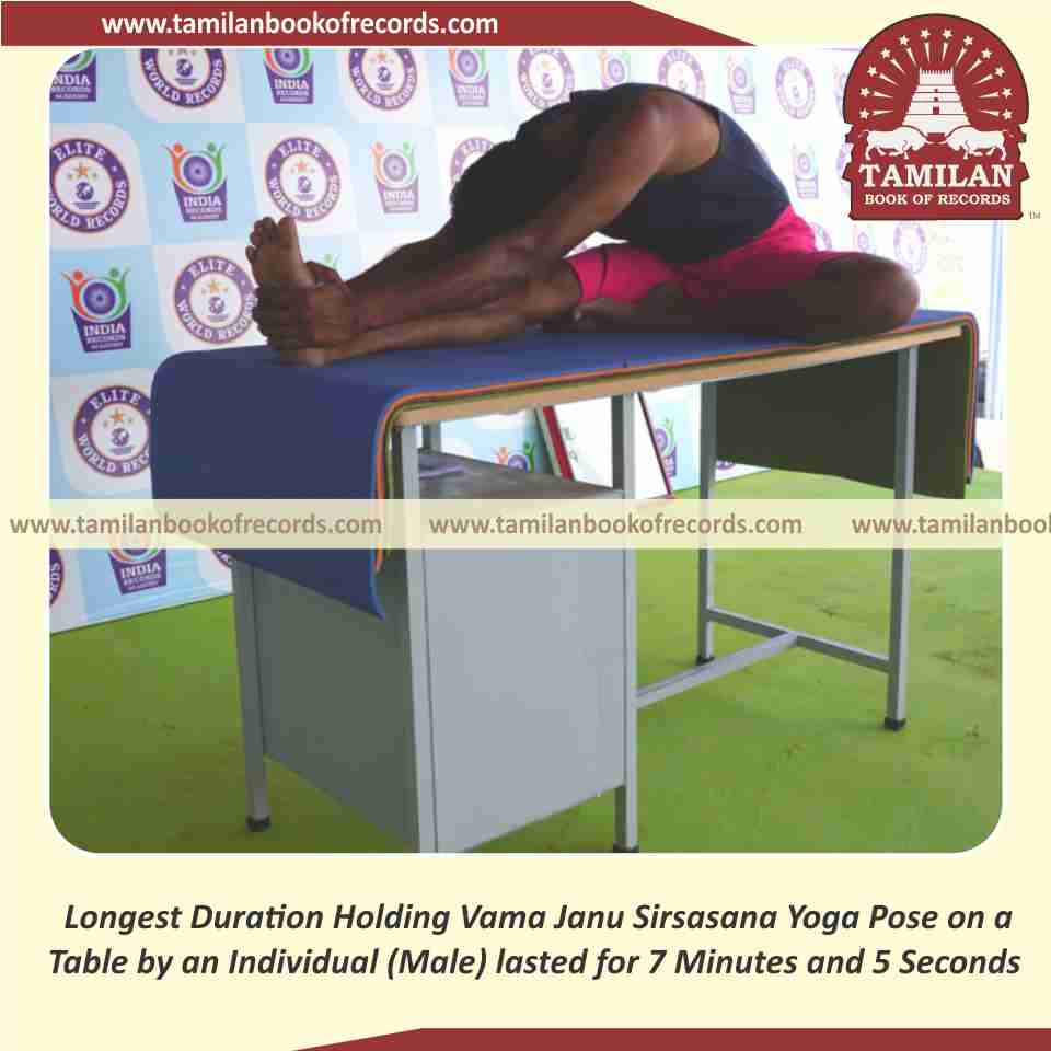 Longest Duration Holding Vama Janu Sirsasana Yoga Pose on a Table by an Individual (Male)