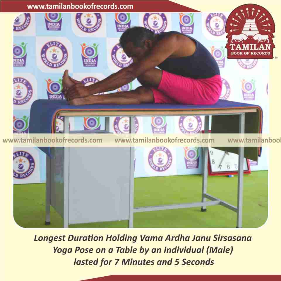 Longest Duration Holding Vama Ardha Janu Sirsasana Yoga Pose on a Table by an Individual (Male)