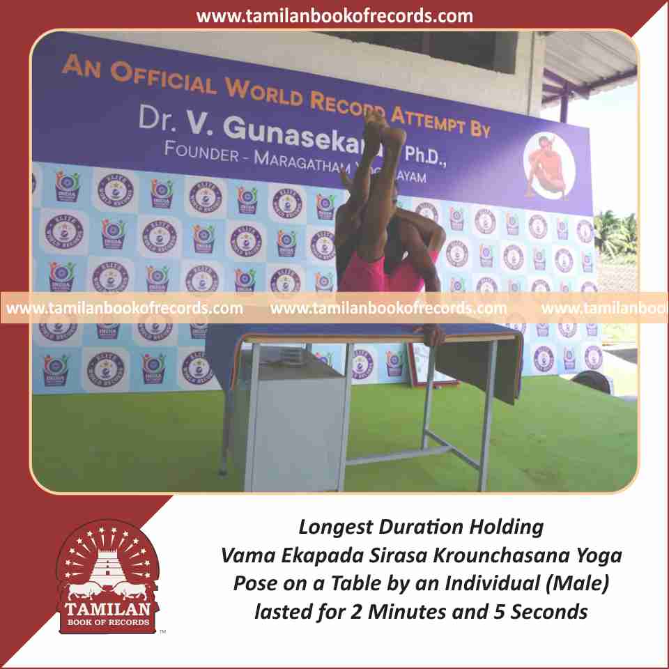 Longest Duration Holding Vama Ekapada Sirasa Krounchasana Yoga Pose on a Table by an Individual (Male)