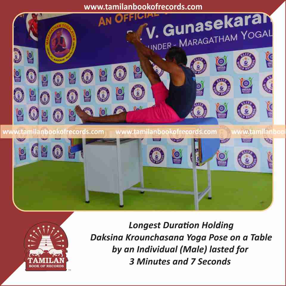 Longest Duration Holding Daksina Krounchasana Yoga Pose on a Table by an Individual (Male)