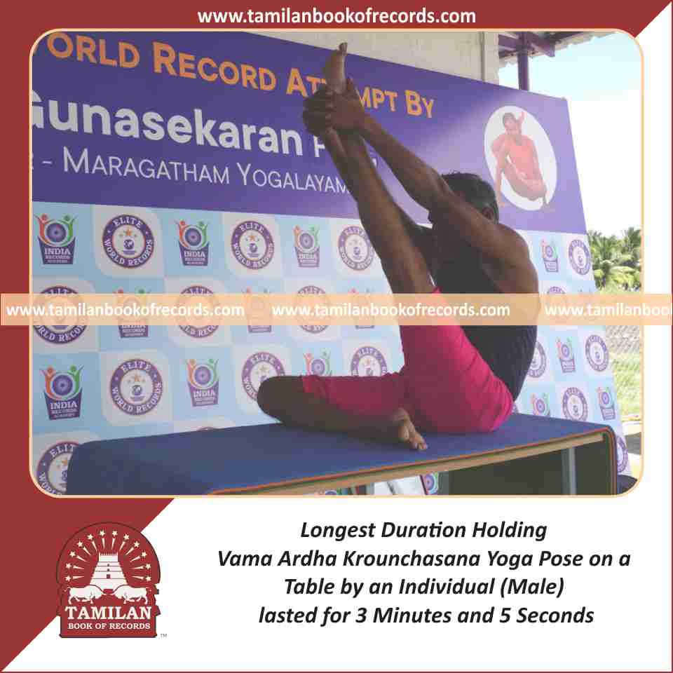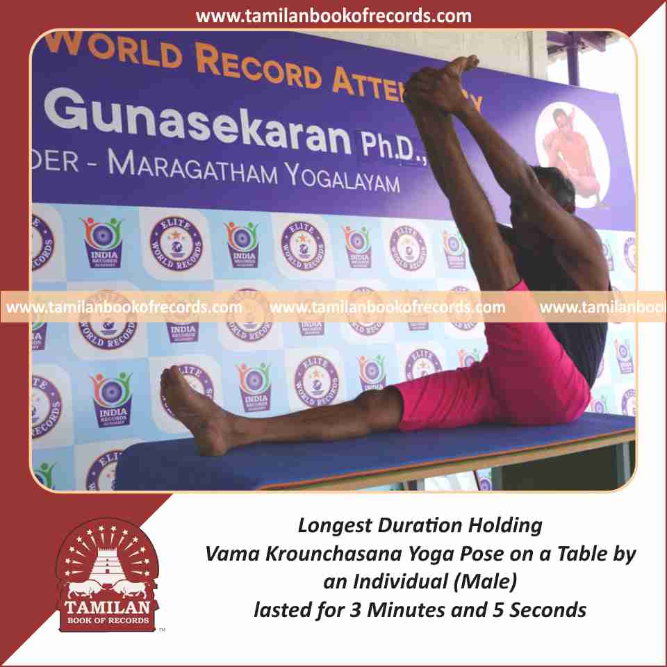 Longest Duration Holding Vama Krounchasana Yoga Pose on a Table by an Individual (Male)