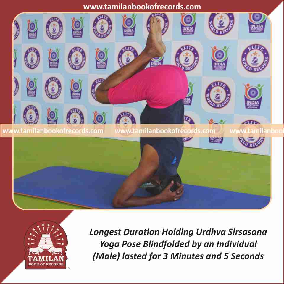 Longest Duration Holding Urdhva Sirsasana Yoga Pose Blindfolded by an Individual (Male)