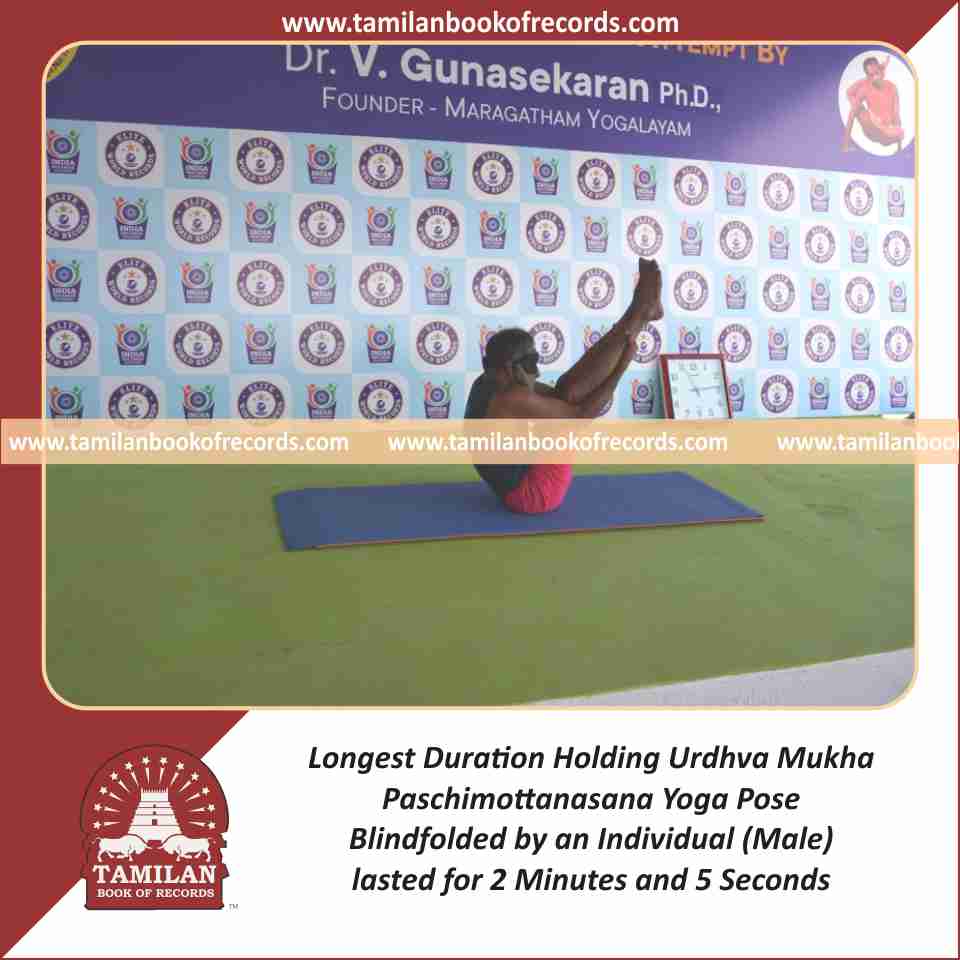 Longest Duration Holding Urdhva Mukha Paschimottanasana Yoga Pose Blindfolded by an Individual (Male)