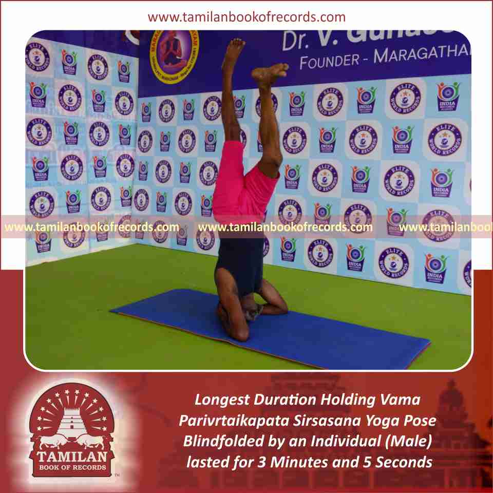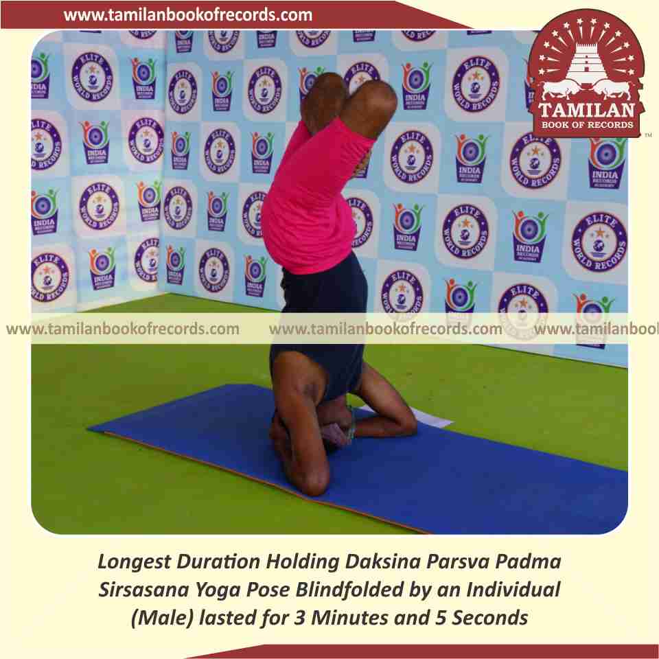 Longest Duration Holding Daksina Parsva Padma Sirsasana Yoga Pose Blindfolded by an Individual (Male)