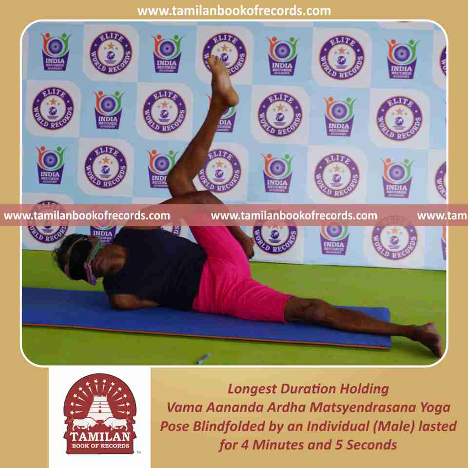 Longest Duration Holding Vama Aananda Ardha Matsyendrasana Yoga Pose Blindfolded by an Individual (Male)