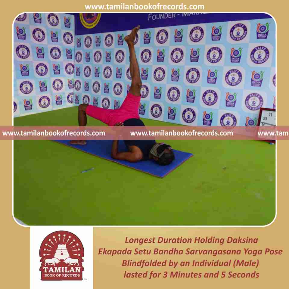 Longest Duration Holding Daksina Ekapada Setu Bandha Sarvangasana Yoga Pose Blindfolded by an Individual (Male)