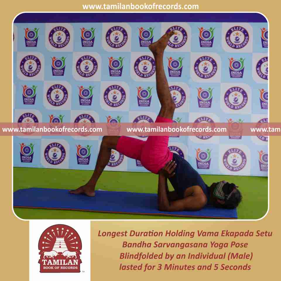 Longest Duration Holding Vama Ekapada Setu Bandha Sarvangasana Yoga Pose Blindfolded by an Individual (Male)