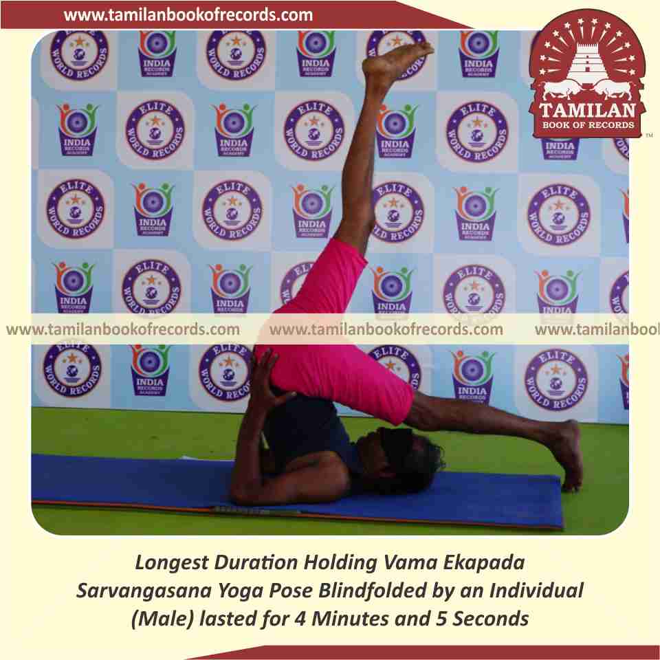 Longest Duration Holding Vama Ekapada Sarvangasana Yoga Pose Blindfolded by an Individual (Male)
