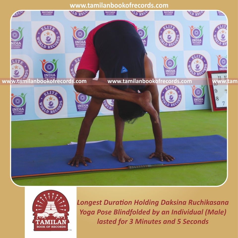 Longest Duration Holding Daksina Ruchikasana Yoga Pose Blindfolded by an Individual (Male)