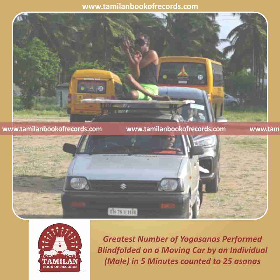Greatest Number of Yogasanas Performed Blindfolded on a Moving Car by an Individual (Male) in 5 Minutes