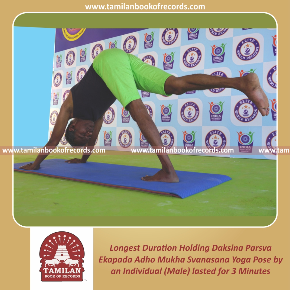 Longest Duration Holding Daksina Parsva Ekapada Adho Mukha Svanasana Yoga Pose by an Individual (Male)