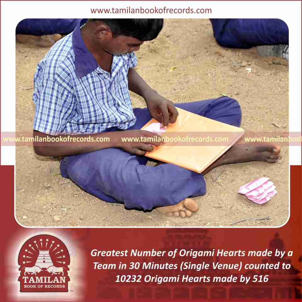 Greatest Number of Origami Hearts made by a Team in 30 Minutes (Single Venue)