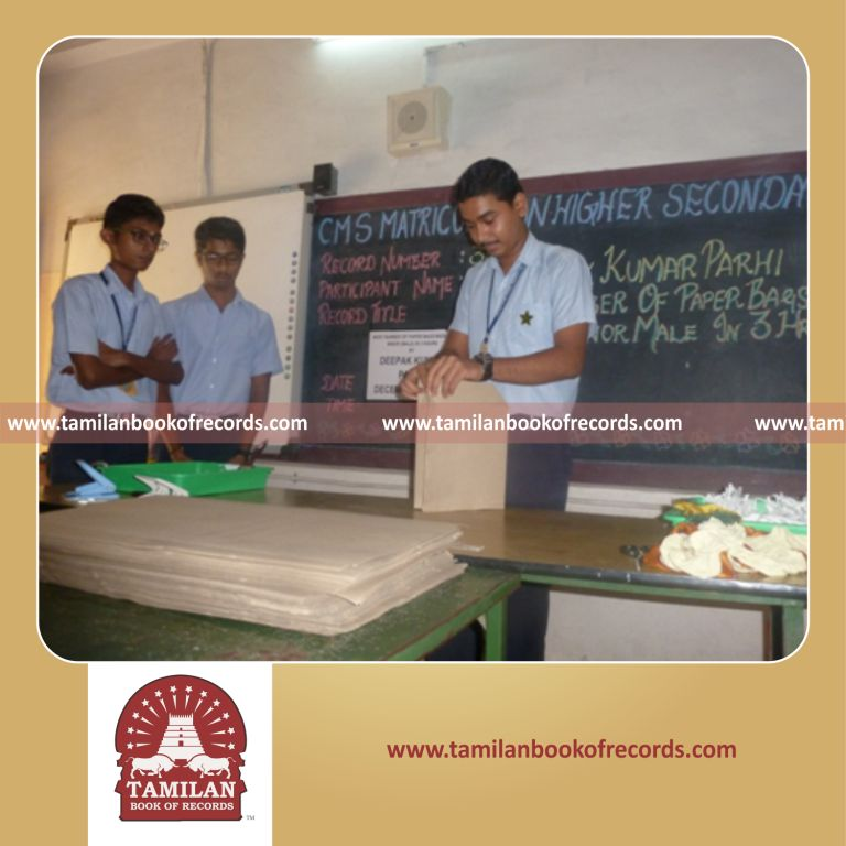 Greatest Number of Paper Bags made by a Minor (Male) in 3 Hours